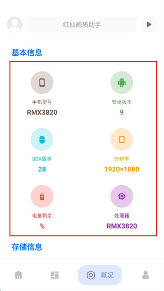4、在概況頁(yè)面中,能查看手機(jī)型號(hào)安卓版本等基本信息,以及后續(xù)的存儲(chǔ)信息。