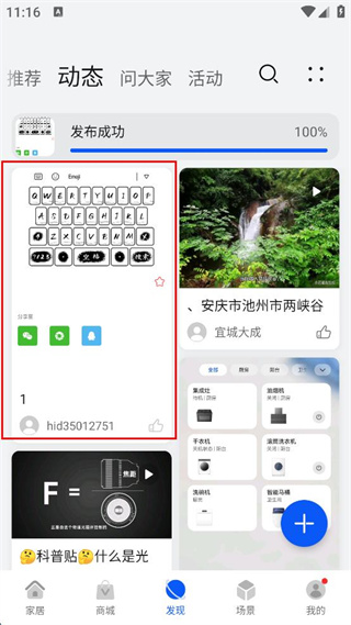4、點(diǎn)擊發(fā)布按鈕,等待發(fā)布成功,即可在動(dòng)態(tài)頁面查看發(fā)布的帖子。