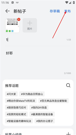 3、添加標(biāo)題和正文,可選擇推薦話題,完成內(nèi)容編輯。