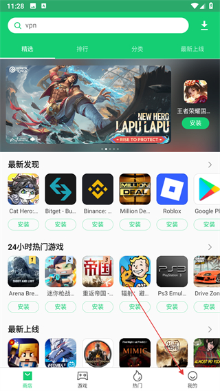 1、打開APKPure主界面,點(diǎn)擊導(dǎo)航欄中的我的選項(xiàng),進(jìn)入個人相關(guān)頁面。