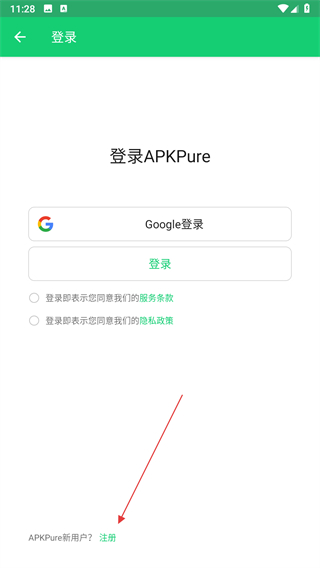 3、在登錄界面底部找到注冊選項(xiàng),點(diǎn)擊該選項(xiàng)跳轉(zhuǎn)至APKPure的注冊頁面。