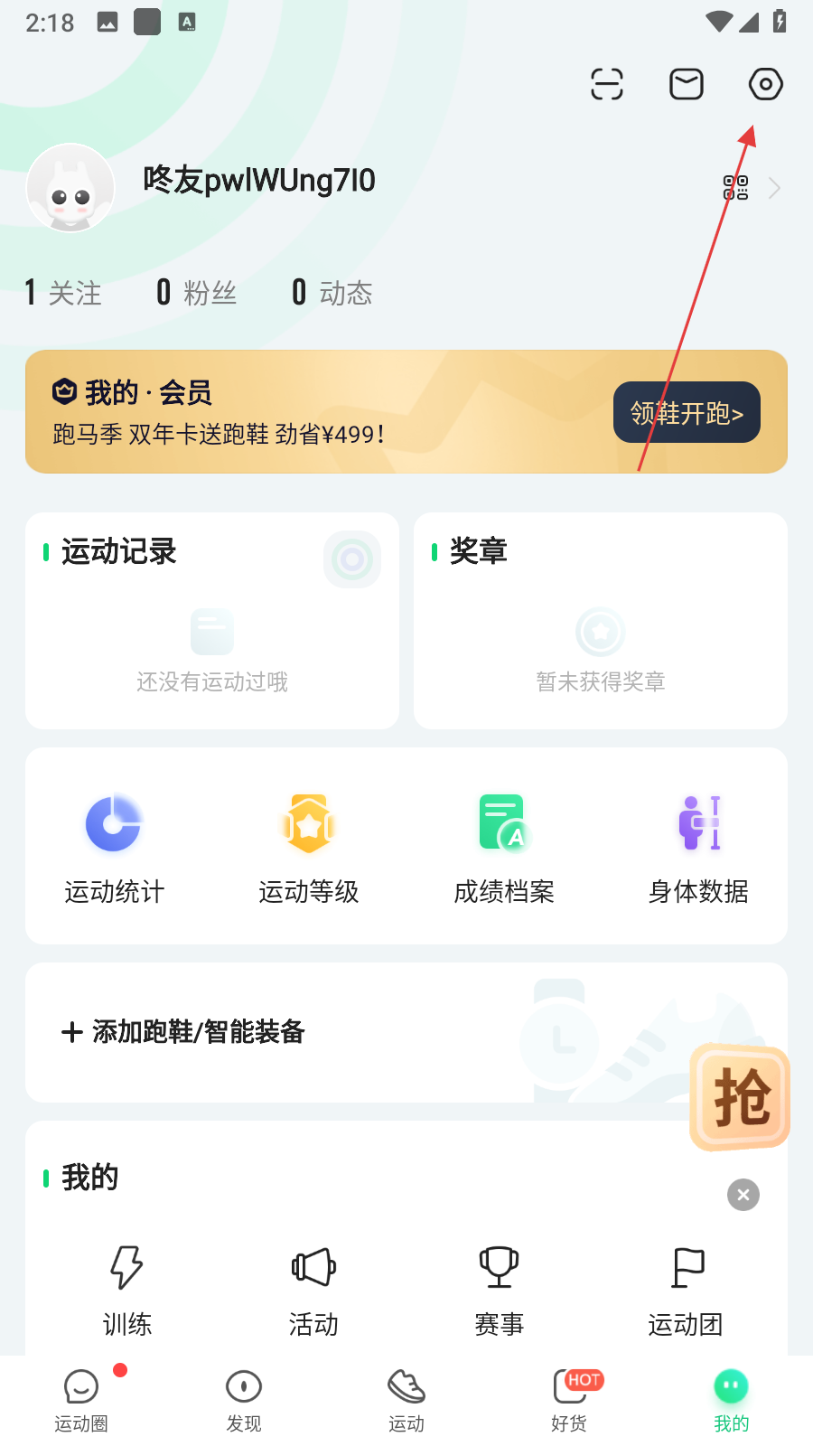 1、打開咕咚APP,點(diǎn)擊頁面右下角我的,進(jìn)入個(gè)人中心頁面。
