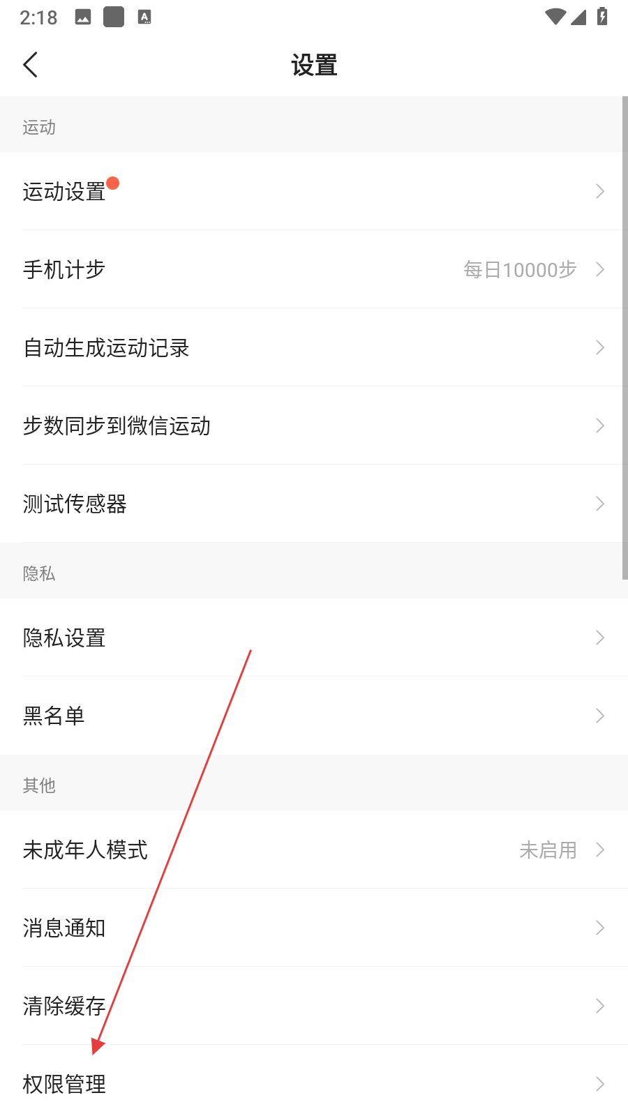3、在設(shè)置界面中,找到并點(diǎn)擊權(quán)限管理選項(xiàng)。
