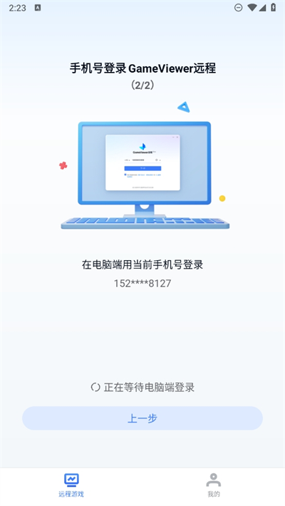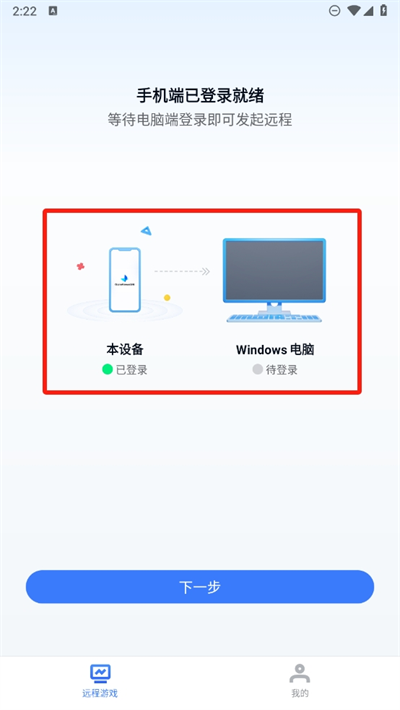 2、注冊(cè)登錄后手機(jī)端登錄就緒,我們可以將電腦端進(jìn)行登錄后發(fā)起遠(yuǎn)程控制;