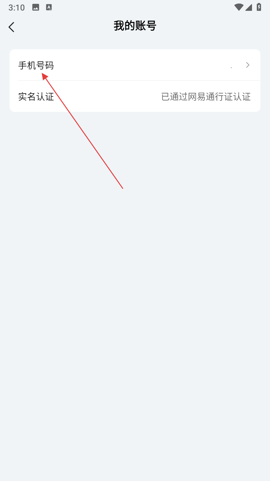 2、在我的賬號(hào)頁(yè)面,點(diǎn)擊手機(jī)號(hào)碼進(jìn)入相關(guān)界面。