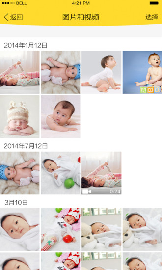 點擊主菜單右上角的相冊按鈕,進入照片與視頻界面。用戶可以使用各種交友軟件、郵件等分享照片和視頻。