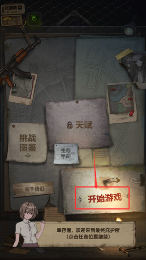 1、啟動(dòng)程序后選擇開(kāi)始游戲選項(xiàng),即刻進(jìn)入末日生存挑戰(zhàn)。