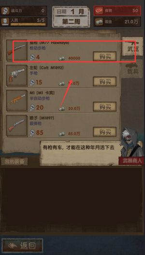 3、通過(guò)交易系統(tǒng)獲取裝甲車(chē)、步槍等關(guān)鍵裝備,提升生存幾率。