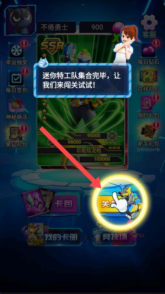 1、抽卡完畢后,點擊【關(guān)卡】選擇關(guān)卡進(jìn)入游戲。