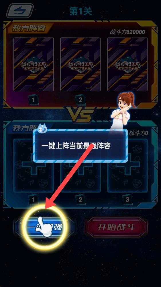 2、點擊【一鍵最強】派出最強陣容進(jìn)行戰(zhàn)斗。