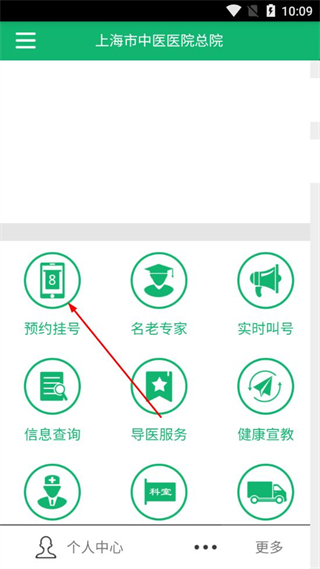 1、在上海市中醫(yī)醫(yī)院app首頁(yè),點(diǎn)擊預(yù)約掛號(hào)選項(xiàng),進(jìn)入預(yù)約掛號(hào)頁(yè)面。