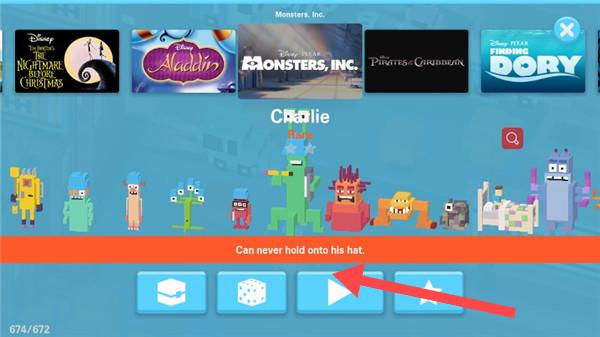 3、角色收集養(yǎng)成:使用收集的金幣解鎖新角色,每個角色屬性不同,通過持續(xù)闖關(guān)收集資源,打造專屬的迪士尼角色陣容。