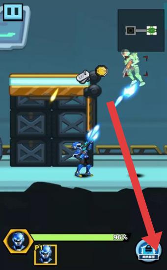1、游戲中操控角色射擊敵人,右下角有相關功能按鈕,注意利用場景元素,躲避攻擊并消滅敵人,推進關卡。