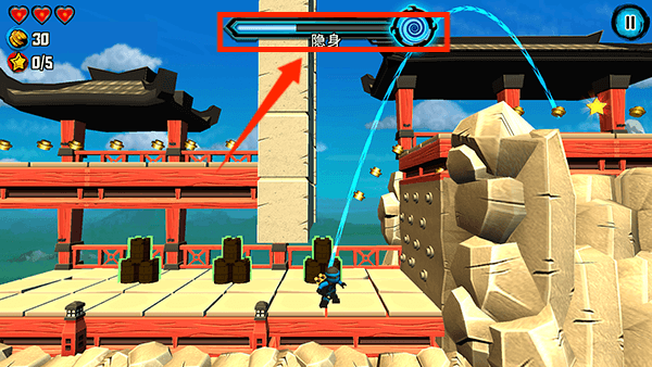 3、能量條充滿后即可隱身,小心路上的敵人。