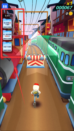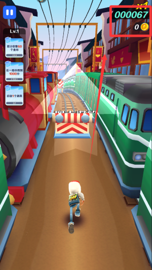 1、滑動(dòng)屏幕向上跳躍,向下滑行,左右移動(dòng),來(lái)規(guī)避障礙物。