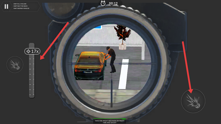 1、左手搓屏幕調(diào)整瞄準(zhǔn)鏡倍率,右手戳射擊鍵,戳weapon挑選武器。