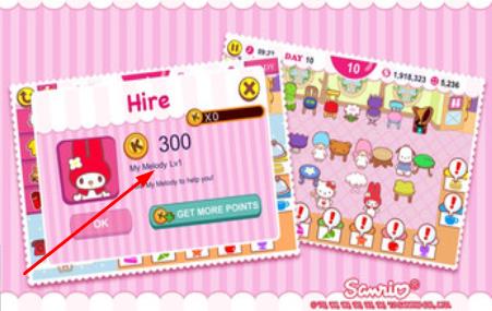 2、點擊【裝飾商城】分類標簽,拖動選中的櫻花桌布、凱蒂貓掛飾等物品至店內對應區(qū)域,完成基礎裝修后點擊【開門營業(yè)】迎接首批客人。