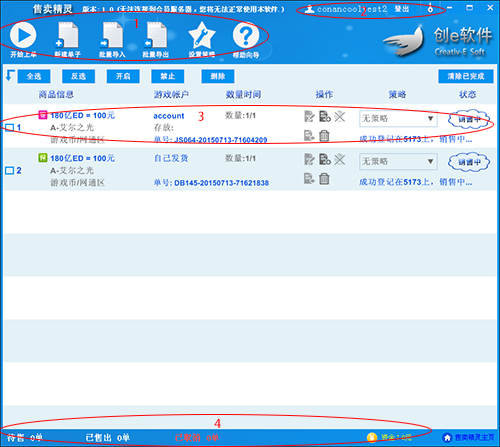 首次使用時,您需要新建個銷售單,點擊工具欄上的新建單子按鈕,會出現(xiàn)新建對話框,然后類似5173上的操作,你可以選好游戲,設(shè)置好銷售信息,即可銷售,下次再新建時軟件將完全記錄上次填寫的信息,自動為您填寫,您只需要少許修改即可。