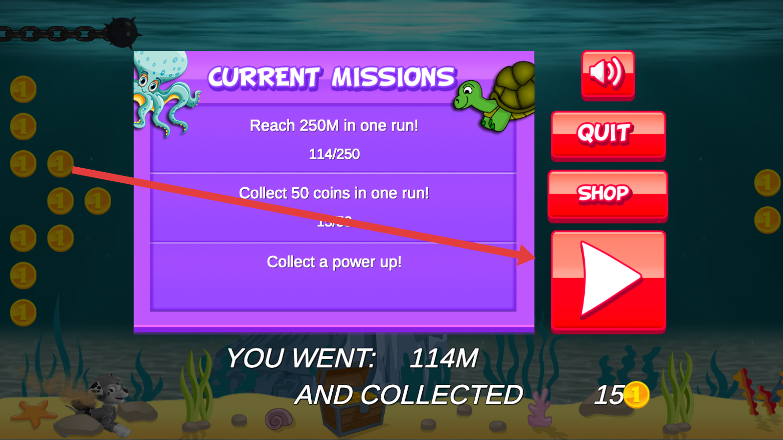 2、道具輔助機制:使用金幣購買加速鰭、氧氣瓶等道具,提升救援效率與生存能力,應對海盜船等危險區(qū)域的挑戰(zhàn)。