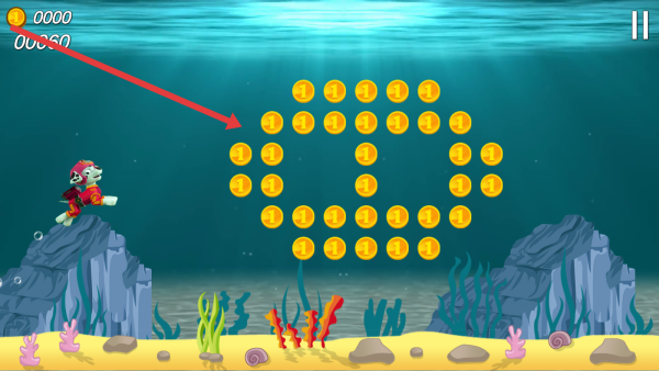 2、按箭頭指示方向,收集沿途的金幣,增加游玩分數(shù)和收益,同時留意屏幕左上角的分數(shù)和金幣數(shù)量顯示。