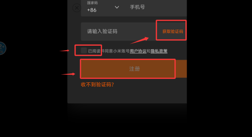 3、將收到的驗證碼輸入,點擊同意用戶協(xié)議,然后注冊即可。