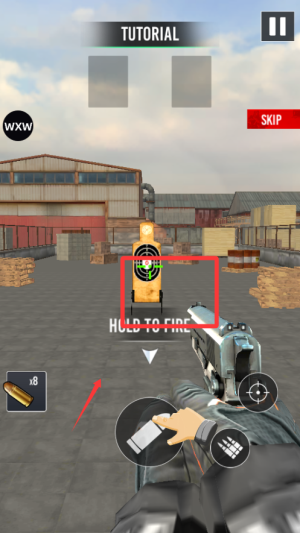 1、開局先熟悉操作界面,滑動來瞄準,點擊射擊,優(yōu)先完成新手教程。