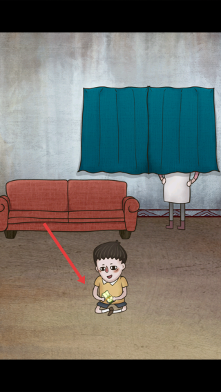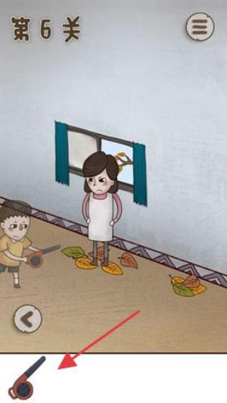 3、第6關(guān):母子在落葉房間,小孩持工具,下方有道具,需互動通關(guān)。