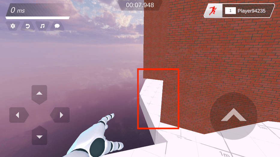 2、通過跳躍上到圖示平臺,開始跑酷。