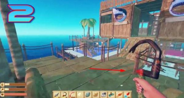 3、使用金屬材料升級木筏結(jié)構(gòu),安裝防御炮塔抵御鯊魚群攻擊,建造雨水收集器與種植盆解決生存需求,駕駛木筏尋找大陸終點。