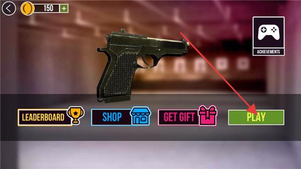 1、主界面,點(diǎn)擊【PLAY】,進(jìn)入射擊對(duì)戰(zhàn)模式,可用金幣(150)在SHOP買道具,開啟戰(zhàn)斗。