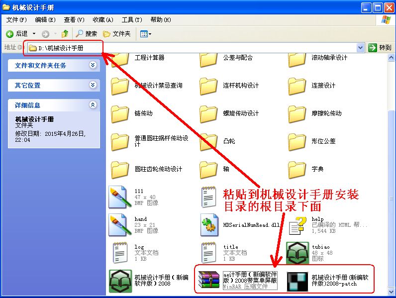 (3)將復(fù)制的兩個文件粘貼到機械設(shè)計手冊安裝目錄的根目錄下面,如下圖: