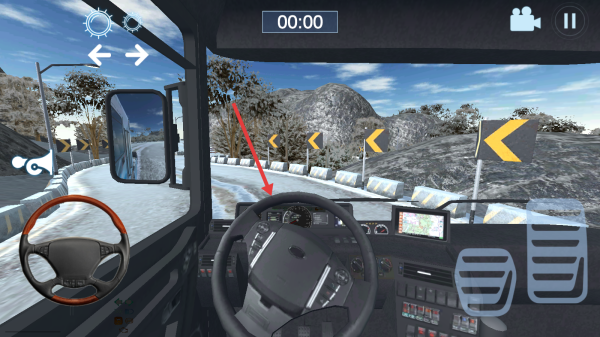1、主界面點【PLAY】,進入雪地駕駛場景,熟悉卡車駕駛艙(方向盤、儀表盤)操作。