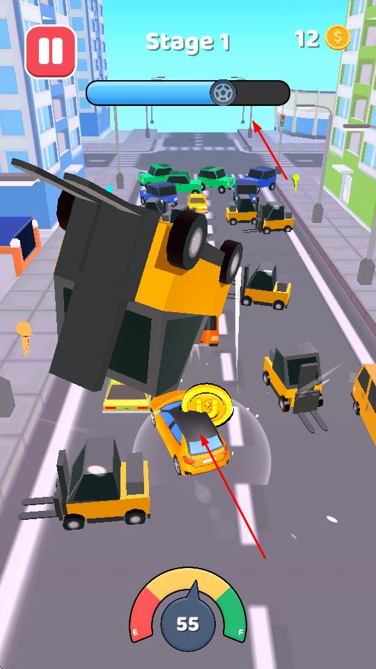 3、玩家操控汽車在道路上行駛,突破各種障礙,完成關(guān)卡任務(wù),獲取金幣獎勵。