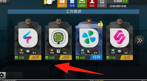 3、在工作邀請界面,選擇【箭頭】指向的合適工作邀請,點擊“選擇”,開始承接運輸任務(wù)。