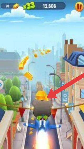 1、畫(huà)面中能看到角色乘坐飛行器的道具在城市街道上方飛行,收集沿途金幣,左上角顯示關(guān)卡進(jìn)度為70,金幣倍數(shù)為33,金幣數(shù)量為12,606,還有暫停按鈕。