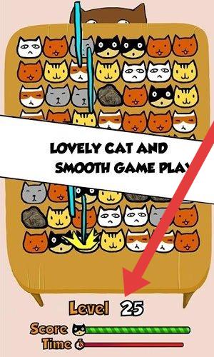 2、在【Level25】等關(guān)卡,交換相鄰貓咪湊齊三個同色消除,避開石頭障礙,借助消除特效推進(jìn)關(guān)卡。