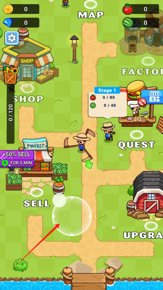 2、撥動(dòng)輪盤移動(dòng)人物,注意收集限時(shí)道具,可能用于解鎖特殊農(nóng)具,利用每日登錄獎(jiǎng)勵(lì)獲取免費(fèi)資源與加速解鎖。
