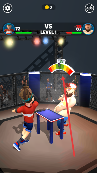 2、戰(zhàn)斗時,點擊【TAP-TO-SLAP】,把握時機扇巴掌,利用力量條(箭頭指向區(qū)域),提升傷害。