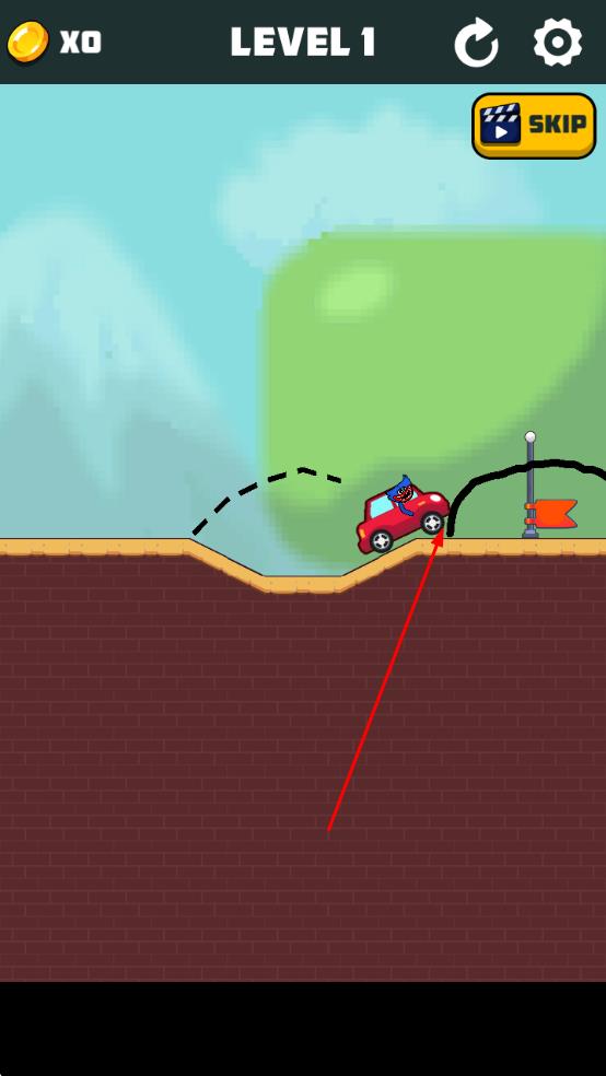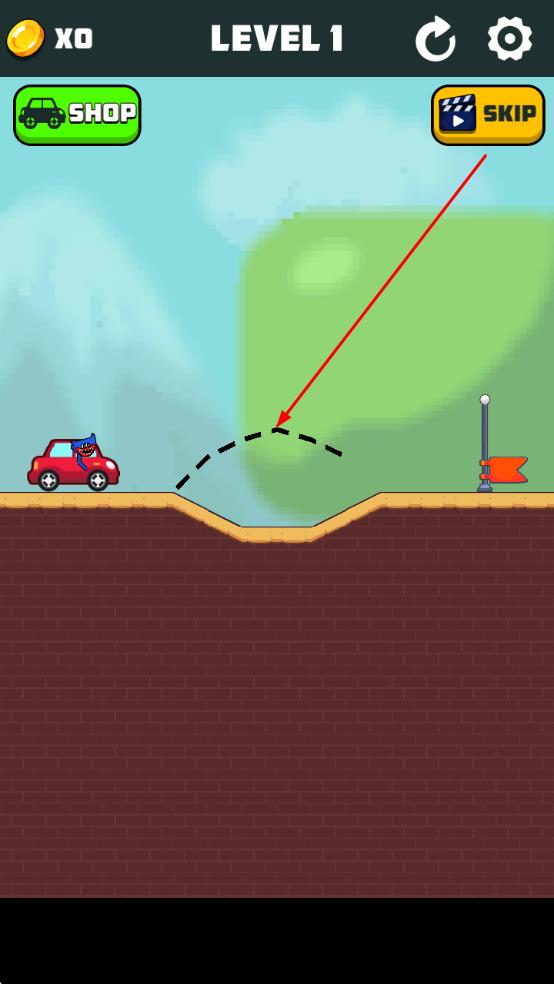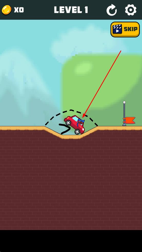1、初始關(guān)卡呈現(xiàn)簡(jiǎn)單障礙與繪畫區(qū)域,需用繪畫功能嘗試搭建首座橋梁。