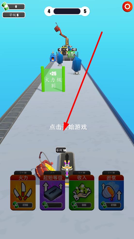 1、點(diǎn)擊“點(diǎn)擊開始游戲”進(jìn)入關(guān)卡,操控寶劍沿跑道前進(jìn),熟悉移動、砍殺操作,收集路上資源,為升級做準(zhǔn)備,開啟跑酷戰(zhàn)斗首程。