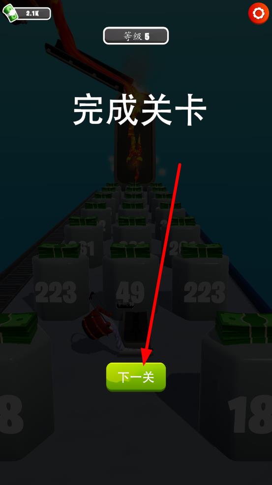 3、成功通關(guān)后,點(diǎn)擊“下一關(guān)”進(jìn)入新挑戰(zhàn),持續(xù)收集資源升級寶劍,摸索不同敵人、BOSS機(jī)制,調(diào)整戰(zhàn)斗策略,推進(jìn)關(guān)卡進(jìn)程。