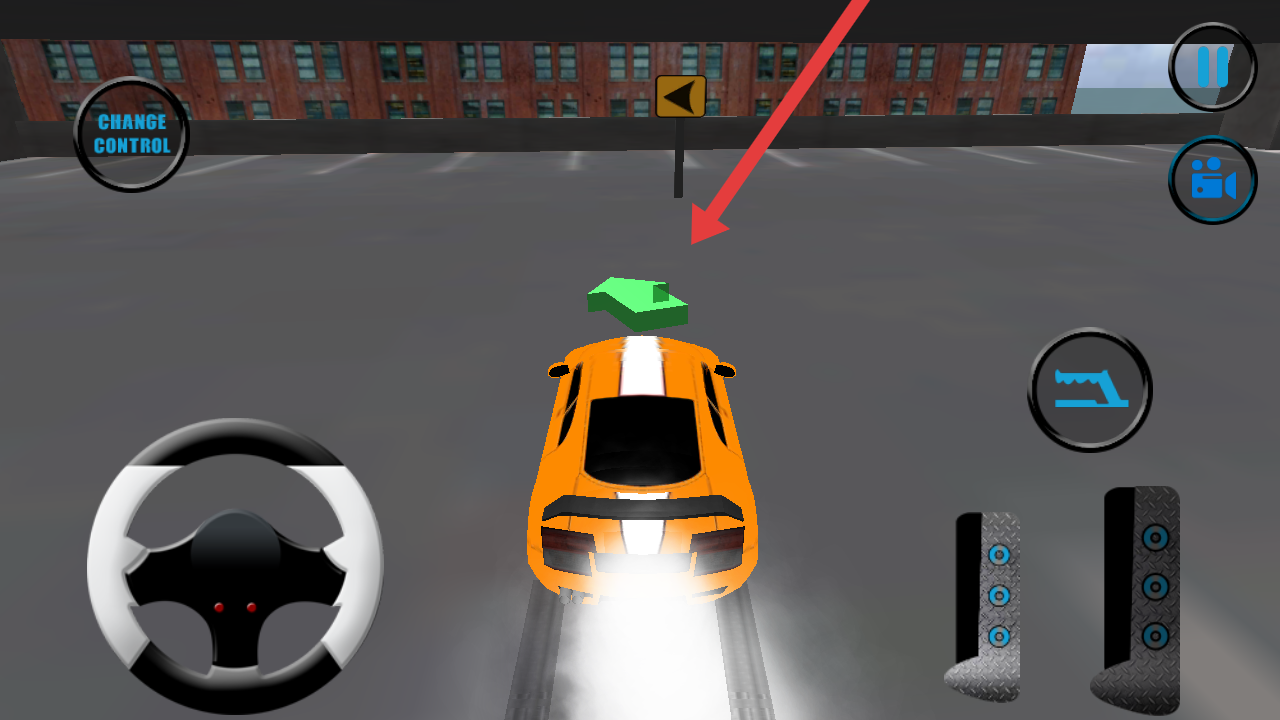 1、操控橙色跑車,利用左側方向盤、右側踏板,駛向綠色箭頭標記的目標區(qū)域,完成最后飛機的運輸過程。