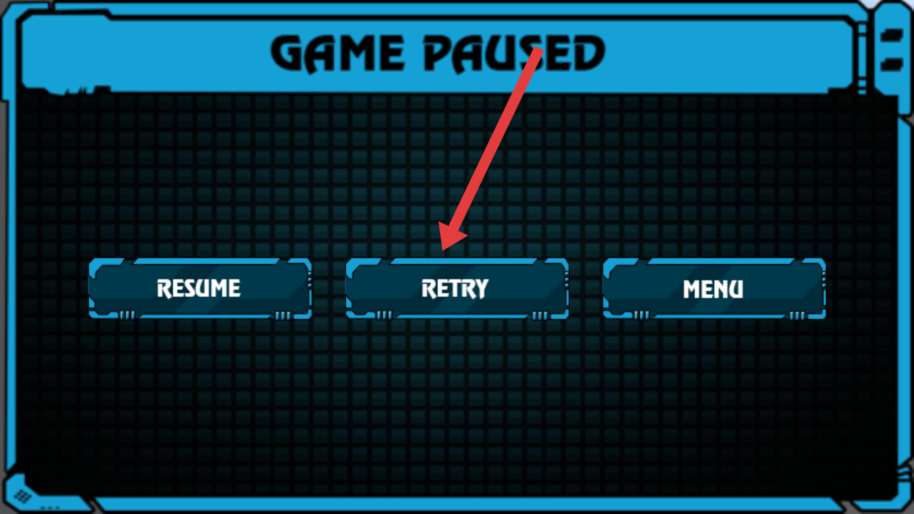 2、在游戲暫停時,若關卡挑戰(zhàn)失利,點擊RETRY的按鈕,重置當前關卡,重新嘗試突破。