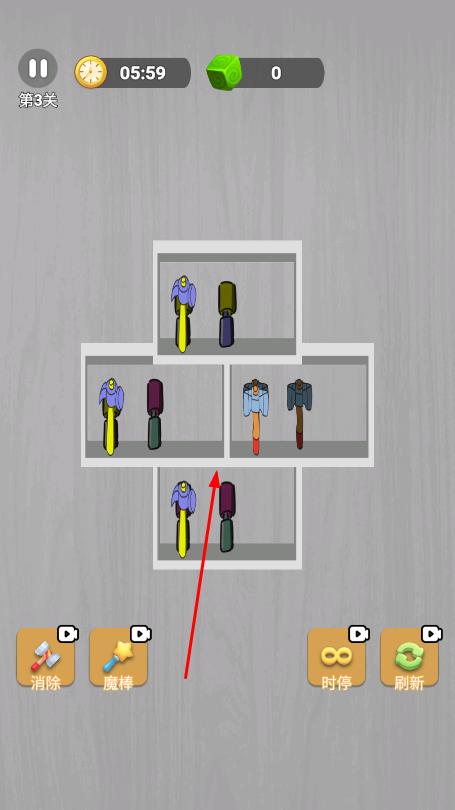 2、拖動(dòng)相同工具,使其在格子內(nèi)匹配消除,可借助消除,魔棒等道具輔助,留意時(shí)間和能量方塊數(shù)量。