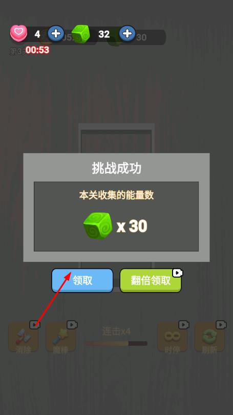 3、成功消除工具,收集能量,挑戰(zhàn)成功后點(diǎn)擊領(lǐng)取獲獎(jiǎng)勵(lì),繼續(xù)挑戰(zhàn)更高關(guān)卡,解鎖新道具、場景。