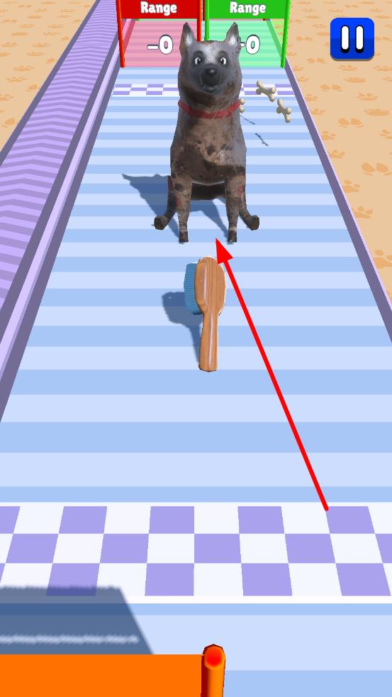 2、注意避開(kāi)減益門(mén),保持道具前進(jìn)節(jié)奏,收集賽道上的護(hù)理道具梳子、骨頭,為寵物做好洗護(hù)護(hù)理。