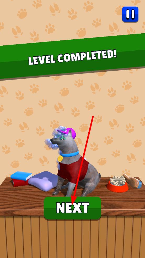 3、抵達(dá)終點(diǎn)后,用收集的道具為寵物清潔、裝扮,完成護(hù)理后點(diǎn)擊“NEXT”進(jìn)入下一關(guān),解鎖新寵物與賽道。
