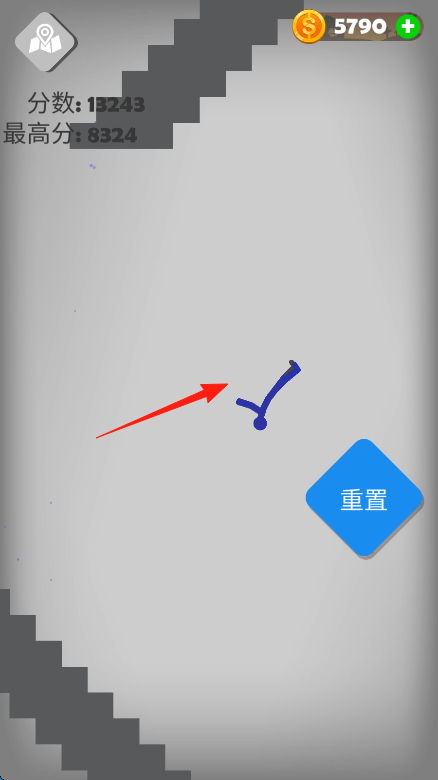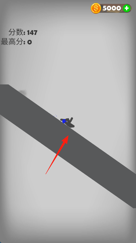1、操控火柴人,按箭頭指引,從斜坡滑下,開始墜落挑戰(zhàn),注意避開障礙物。