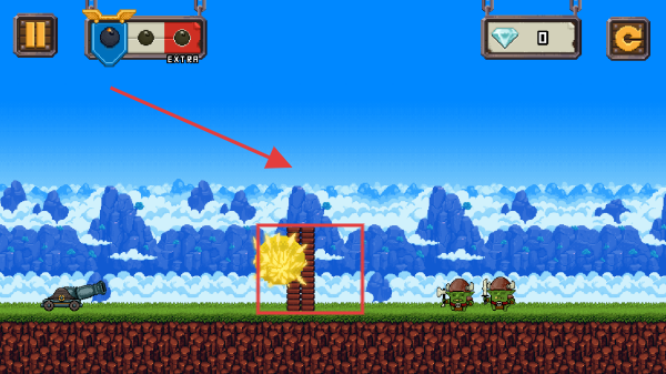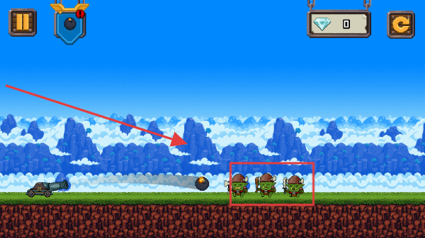 2、進(jìn)入關(guān)卡后,操控左側(cè)大炮發(fā)射炮彈,瞄準(zhǔn)右側(cè)敵人,精準(zhǔn)打擊消滅敵人推進(jìn)游戲進(jìn)程。