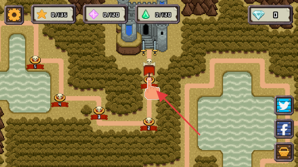 1、在游戲地圖中,點(diǎn)擊對(duì)應(yīng)關(guān)卡位置即可進(jìn)入關(guān)卡,地圖中還展示了星星、紫色水晶、綠色水晶等收集目標(biāo)進(jìn)度。